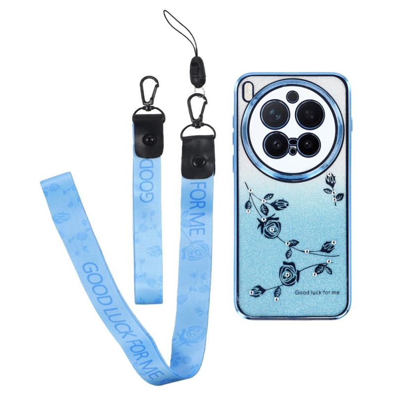 Hülle Für Vivo X300 Pro Riemen Mit Blumen Und Strasssteinen
