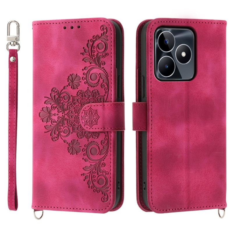 Lederhüllen Realme C53 Blumenmuster Mit Riemen Und Schulterriemen